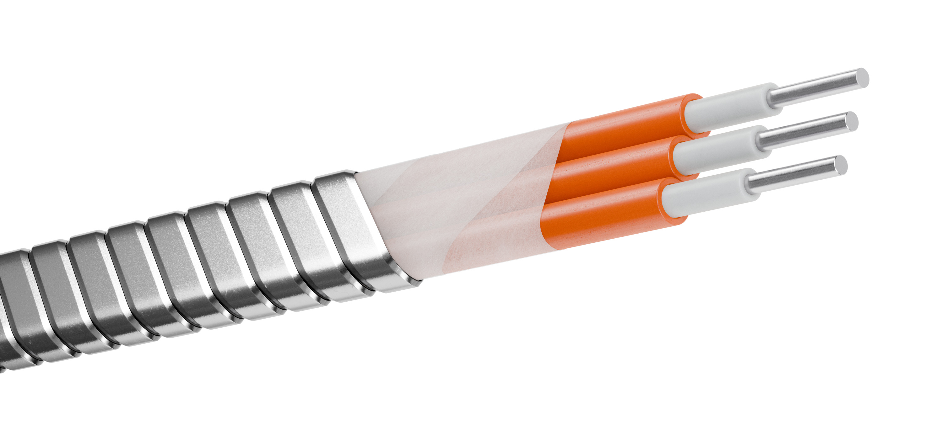 Кабели с тремя основными жилами из термокоррозионностойкого алюминиевого сплава (ТАС) с изоляцией из полимерных материалов для подогрева колонны насосно –компрессорных труб (НКТ) с целью снижения вязкости смеси и предотвращения образования асфальтосмолопарафиновых веществ (АСПВ) на стенках НКТ в нефтянных скважинах, на номинальное напряжение до 2,5 кВ переменного тока 50 Гц. Длительно допустимая температура нагрева жил кабеля – 90,120, 125 °С.